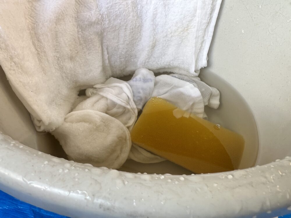 溶け始めて水を受け止めきれなくなるわけです