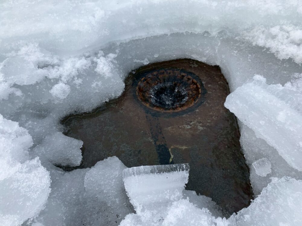 排水口も凍結しており